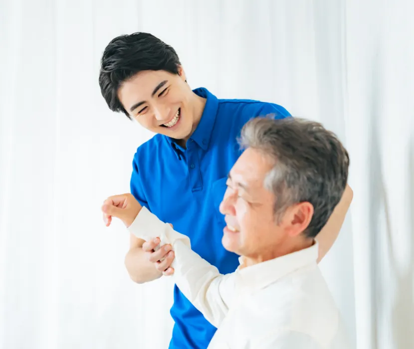 ご高齢の方の身体機能回復・維持を目的に、理学療法士や柔道整復師などの専門職がチームで支援します。